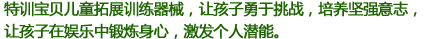滄州華北特訓(xùn)器械有限公司成立于2002年,是專業(yè)研發(fā)生產(chǎn)心理行為訓(xùn)練器械、拓展器械、拓展器材、攀巖、兒童拓展器械的專業(yè)型企業(yè),并通過(guò)ISO-9001質(zhì)量管理體系認(rèn)證及ISO-14001環(huán)境管理體系認(rèn)證,致力于各職業(yè)群體提供的心理行為訓(xùn)練器械、拓展器械、攀巖、兒童拓展器械等設(shè)備,使之不斷提升心理健康水平、充分開發(fā)自我潛能。我公司竭誠(chéng)為廣大客戶提供專業(yè)化各類心理行為訓(xùn)練器械相關(guān)產(chǎn)品和服務(wù)。